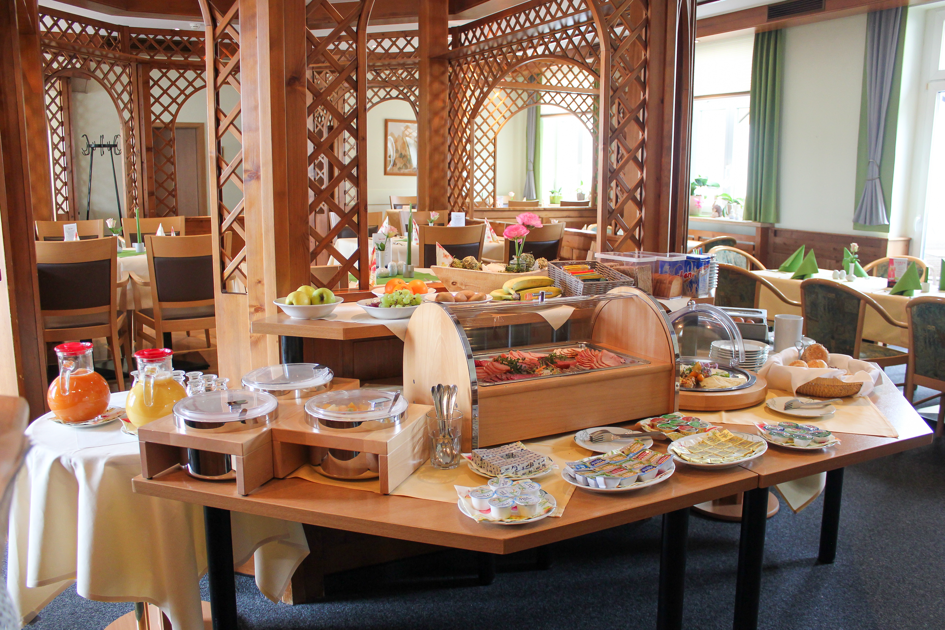 Für unsere Hotelgäste steht jeden Morgen ein reichhaltiges Frühstück bereit. Ob Müsli-Variationen, frisches Obst, Wurst, Käse, Eier oder Marmelade – hier ist für jeden etwas dabei.