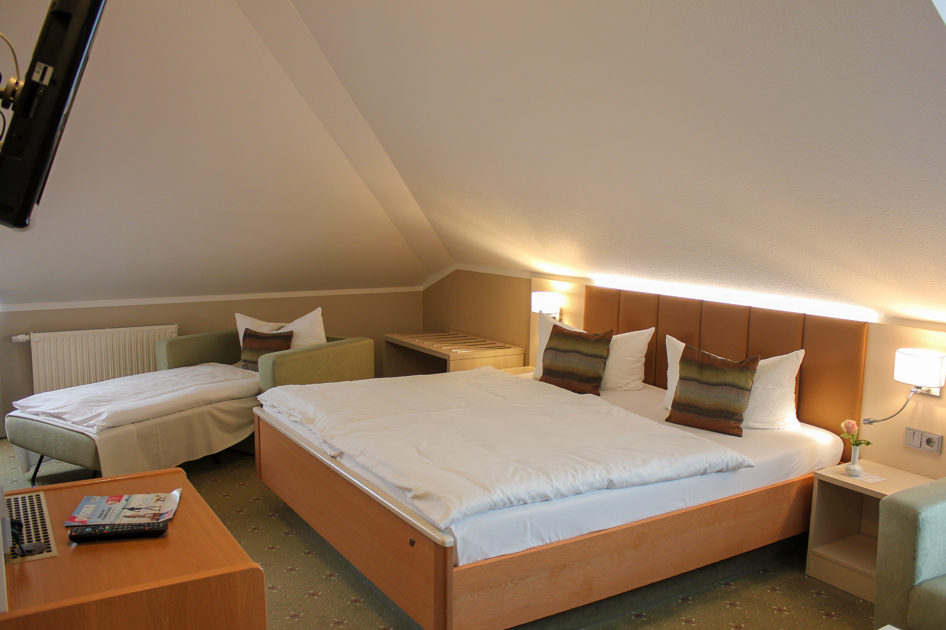 Unser geräumiges Familienzimmer bietet viel Platz für bis zu 5 Personen.